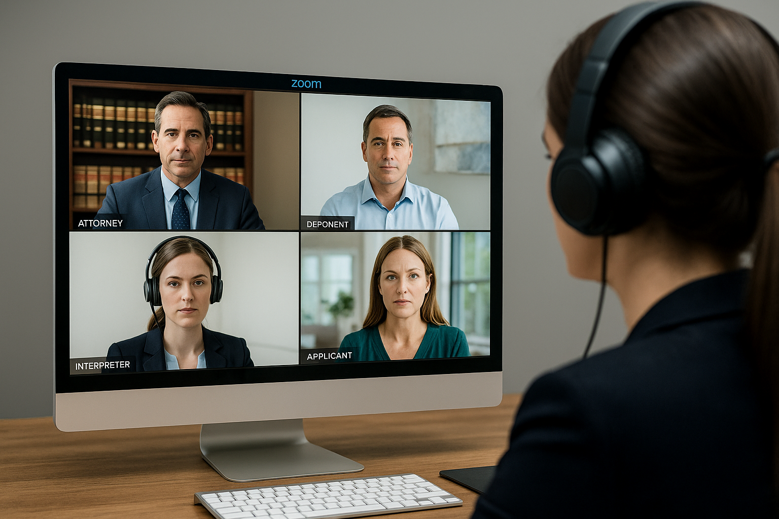 We provide certified interpreters for depositions, C&Rs, hearings, immigration cases, and simultaneous interpretation — statewide and worldwide via Zoom.